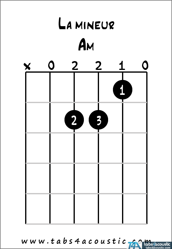 On ne va pas s’arrêter en si bon chemin : voici le quatrième accord, celui qui vous ouvre les portes du mode mineur et de toute la pop musique : le La mineur !